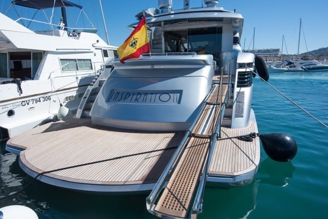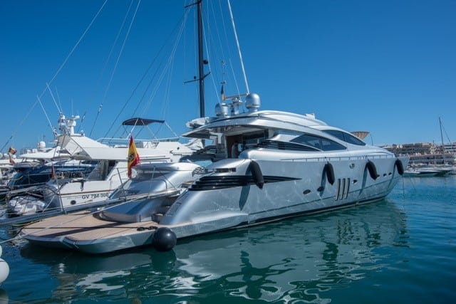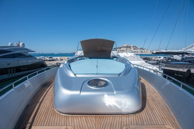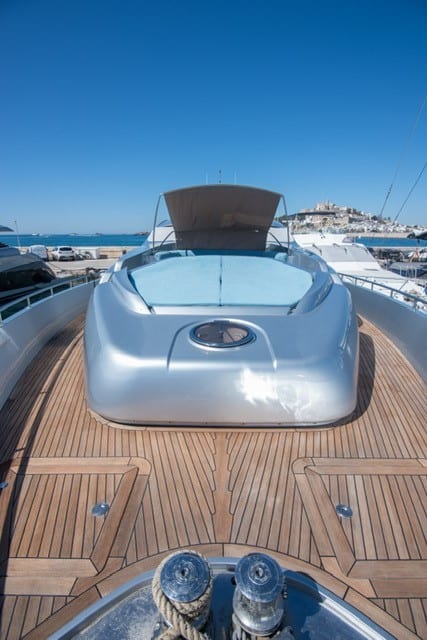 This Pershing 90 super-yacht in Marina Botafoch from the Italian shipyard Pershing Yachts (Ferretti Group S.P.A.) “Inspiration”, with a last refit in 2018, is one of the great novelties in luxury super-yachts to discover in Ibiza every season, with a quiet mooring and discreet. “Inspiration” is an example of the perfection of Pershing engineering and design, an opportunity that luxury lovers should not miss during their holidays in Ibiza.
